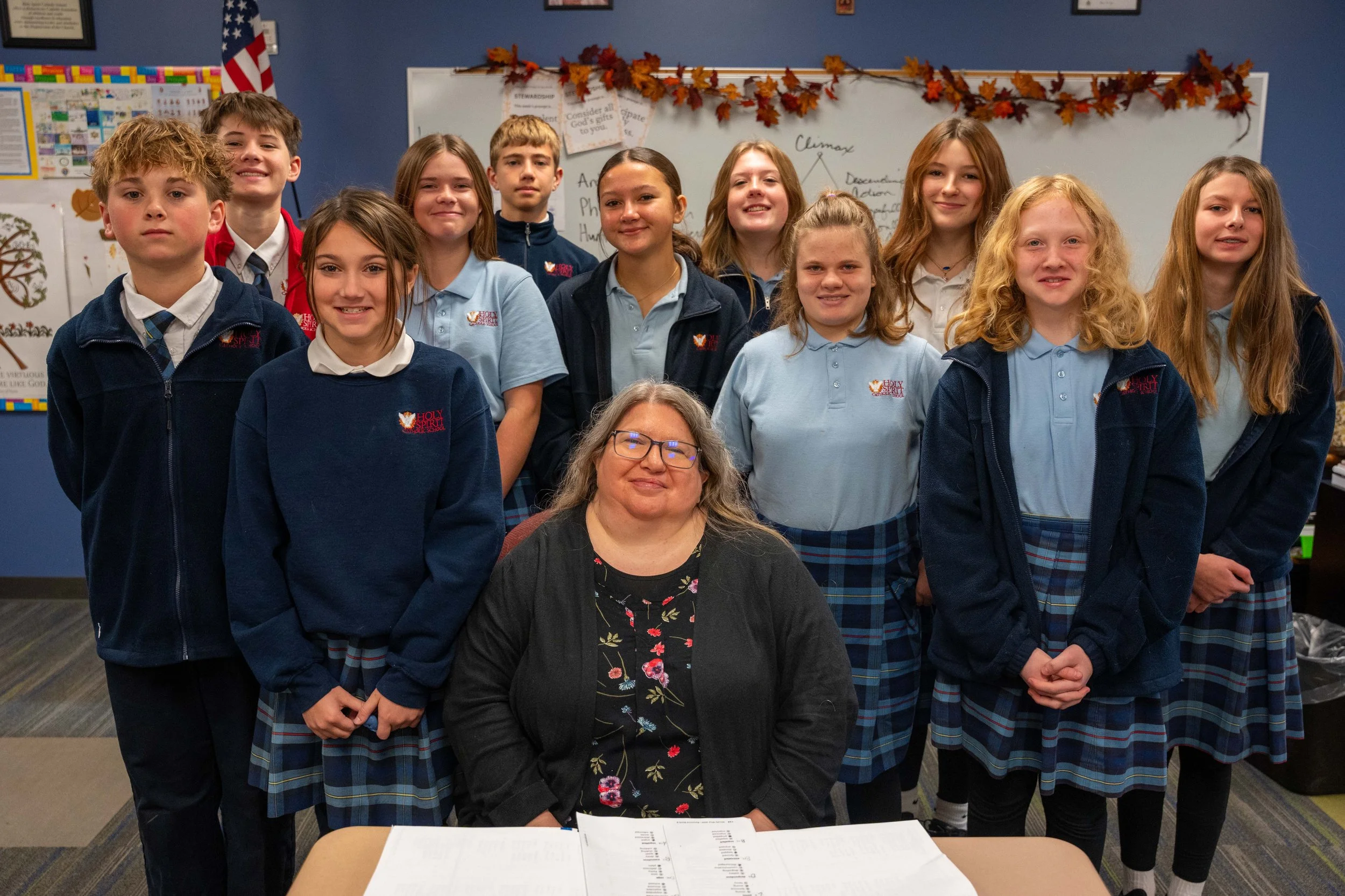 Students in eighth grade join the other eighth grade students across the Diocese of Lansing in taking the diocesan religion test for eighth grade in the spring, which helps assess our diocesan curriculum and its implementation and keeps it current and effective.